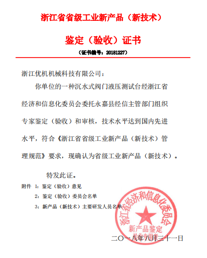 省级工业新产品鉴定证书