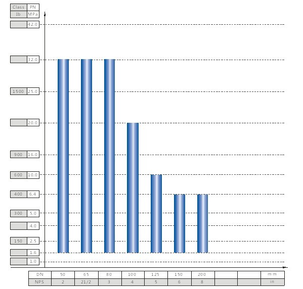 The test range of valve nominal diameter and nominal pressure for JWZ-300 model