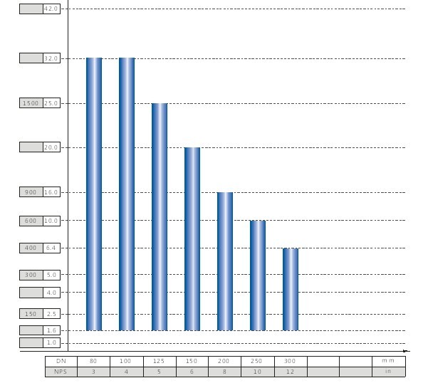 5.3 JWZ-300型 阀门公称通径与公称压力试验范围