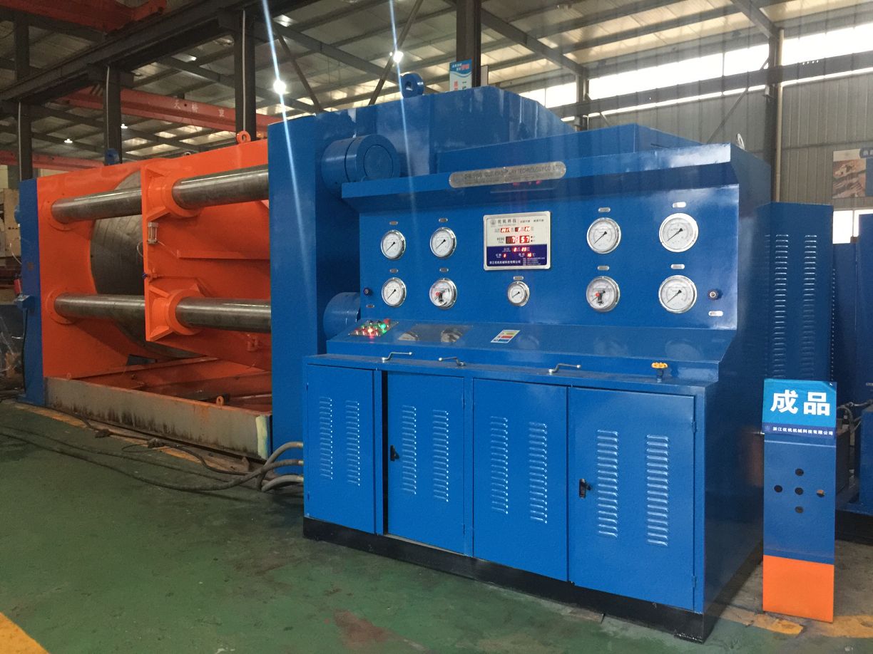 JWT-1200大口径全焊接球阀试验台是頂压式液压试验台是我公司吸取 了国内外同类产品技术精华,自主研发的新一代頂压式液压阀门测试台并拥有国家技术专利知识产权,专利号ZL2016 1 0240324.1,解决了大型全焊接球阀压力试验困难、原始试压不规范和测试过程的安全隐患问题。它具有结构紧凑,功能完善,性能稳定,操作方便等特点。液压系统采用了卸荷保 压功能,在连续开机 50 小时条件下,液压油温升低于 35℃,节省了测试过程的 能源消耗并提高了设备使用寿命,是其它同类产品所无法比拟的。JWT型大口径全焊接阀门测试台可以广泛适用于阀门生产厂家、全焊接球阀用户热力公司、城网管道工程公司、天然气管道工程公司等大口径焊接式法兰式阀门的壳体强度和密封性能试验,试 验压力介质为水、气、油均可。试验的方式完全符合 GB/T13927-92《通用阀门 压力试验》和 JB/T9092-1999《阀门的检测与试验》以及 API 598 和 API 6D 的标准 规范要求。