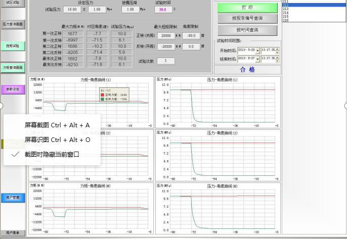 4.该测试装置应能显控阀门扭矩测试过程中任一开度位置的扭矩值,打印表格上应有最大测试扭矩力,并能输出打印(阀门开度位置与扭矩值对应曲线图)。