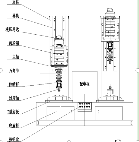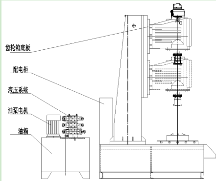JLX型旋塞阀研磨机由立柱机架、导轨及升降机构、齿轮箱旋转机构、装夹机构等组成,旋转机构的旋转中心线相互垂直。立柱与齿轮箱底板的升降功能通过液压油缸来实现,通过按钮可进行上升或下降。